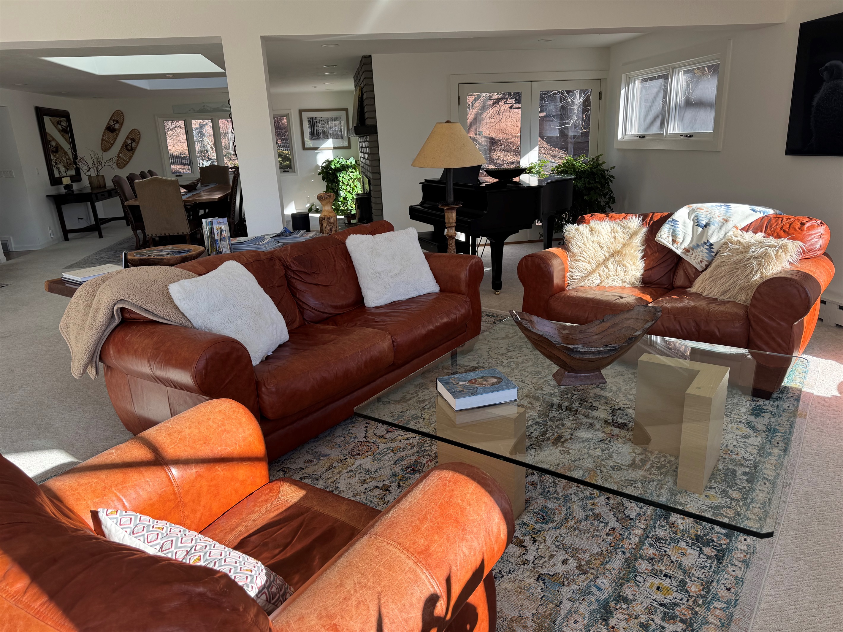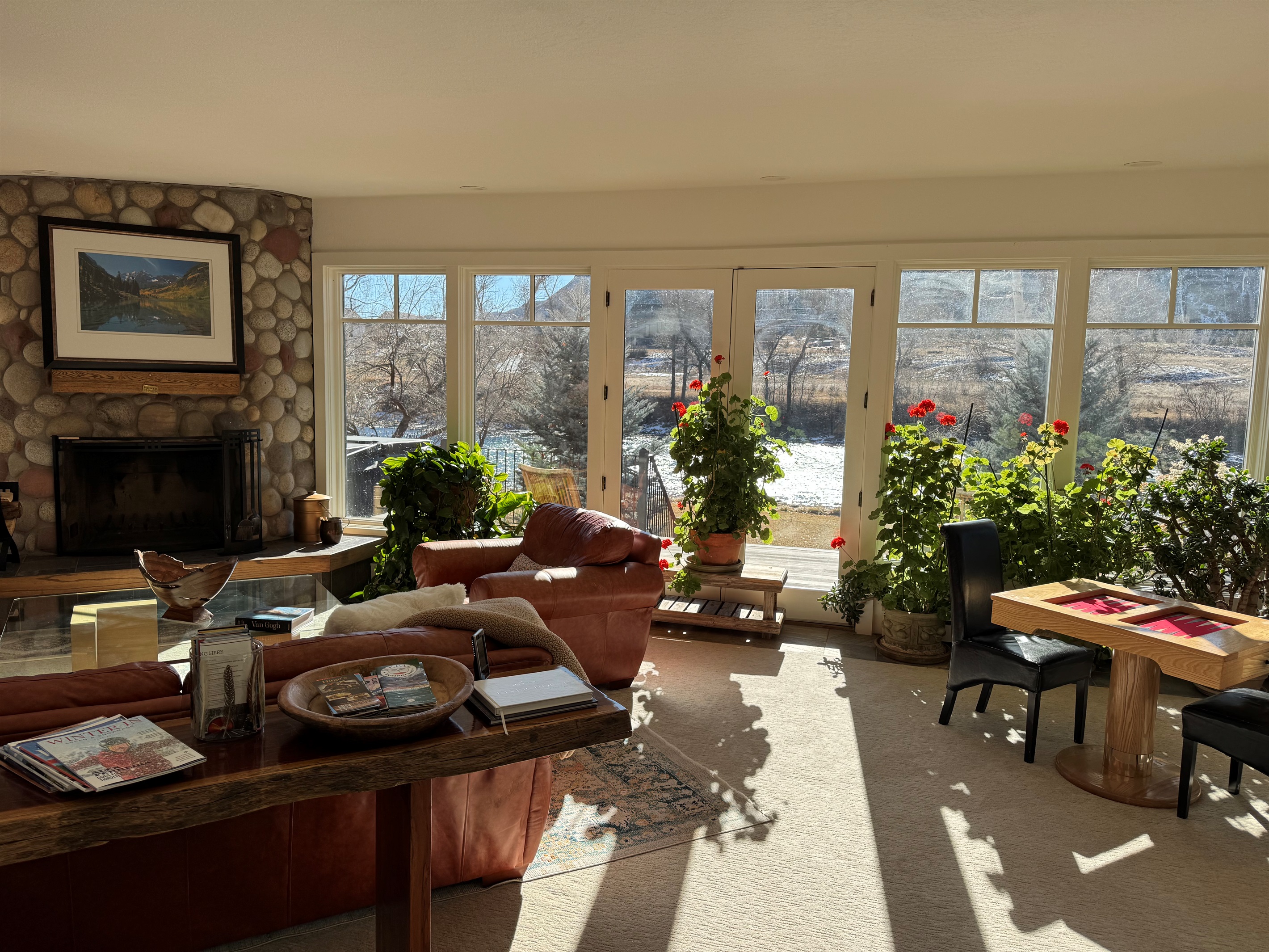 French doors open to views of the river and Mount Sopris.